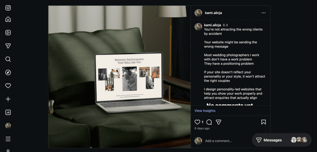Most wedding photographers I speak to rely heavily on Instagram. And it makes sense it is visual, fast, and it is where your work shines.